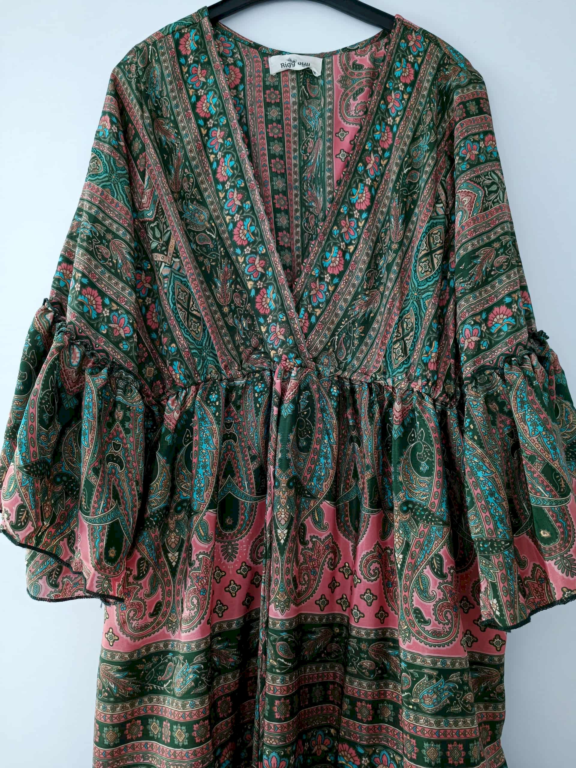 Boho dugačka ljetna haljina, tri četvt rukavi. univerzalna veličina, najbolje odgovara S veličini. Nije nošena, samo oprana.