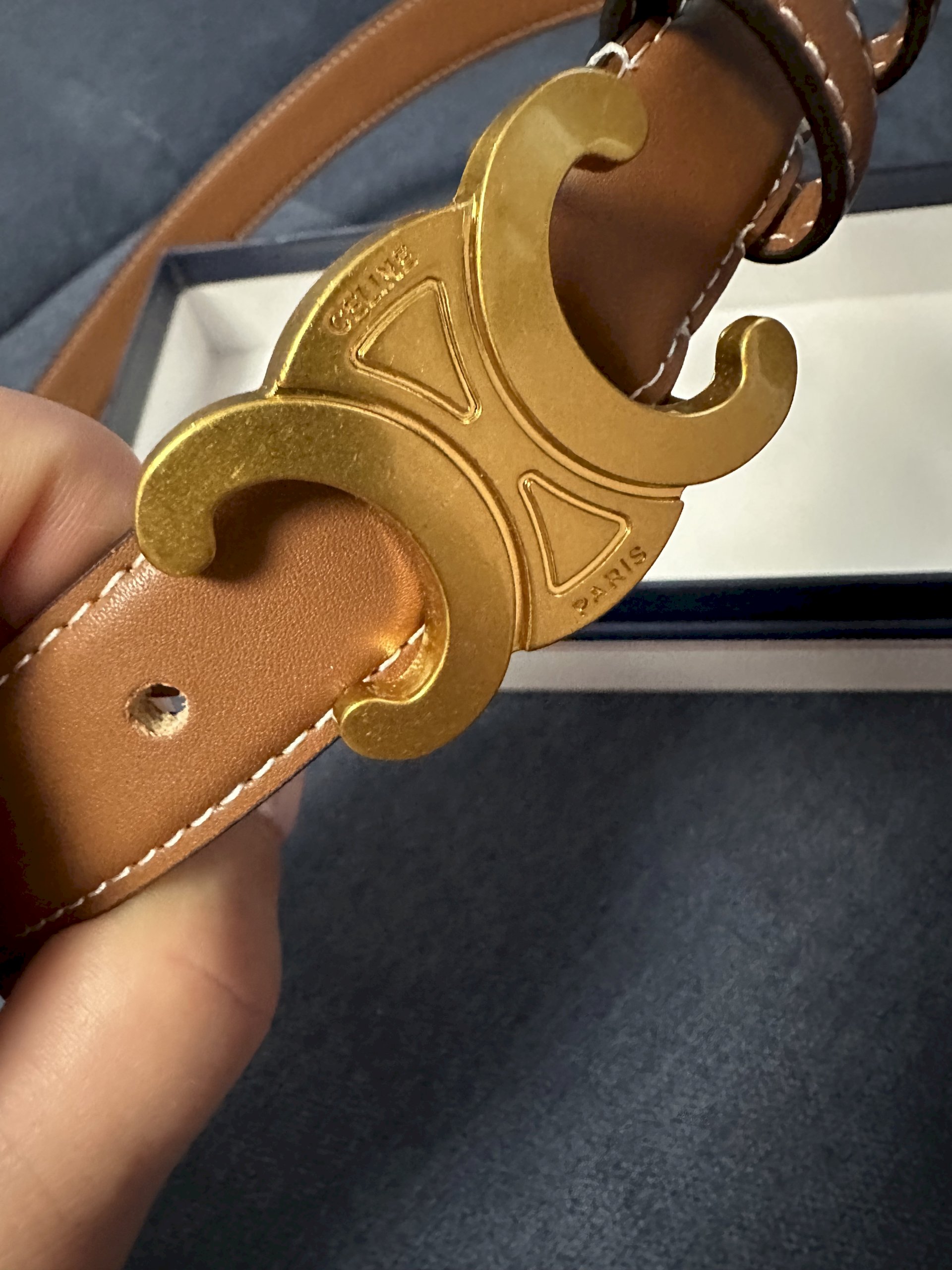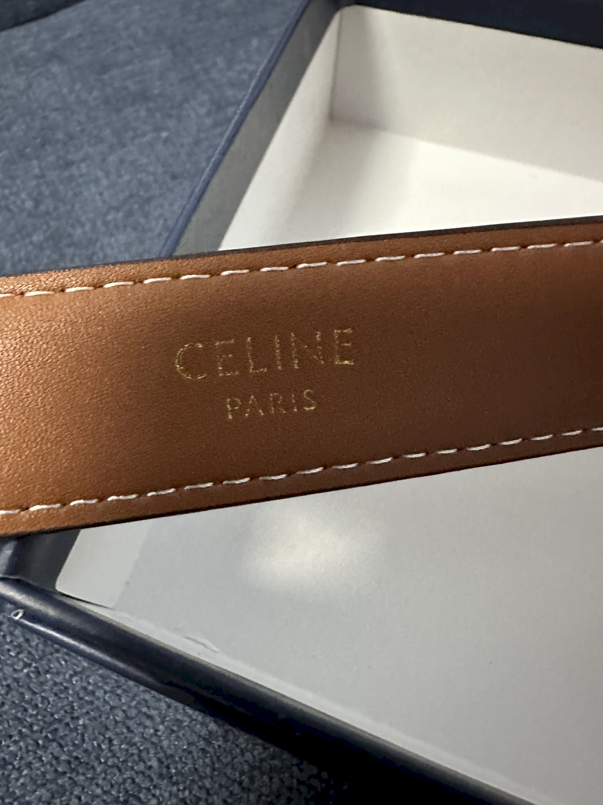Celine remen, šifra vidljiva na remenu.