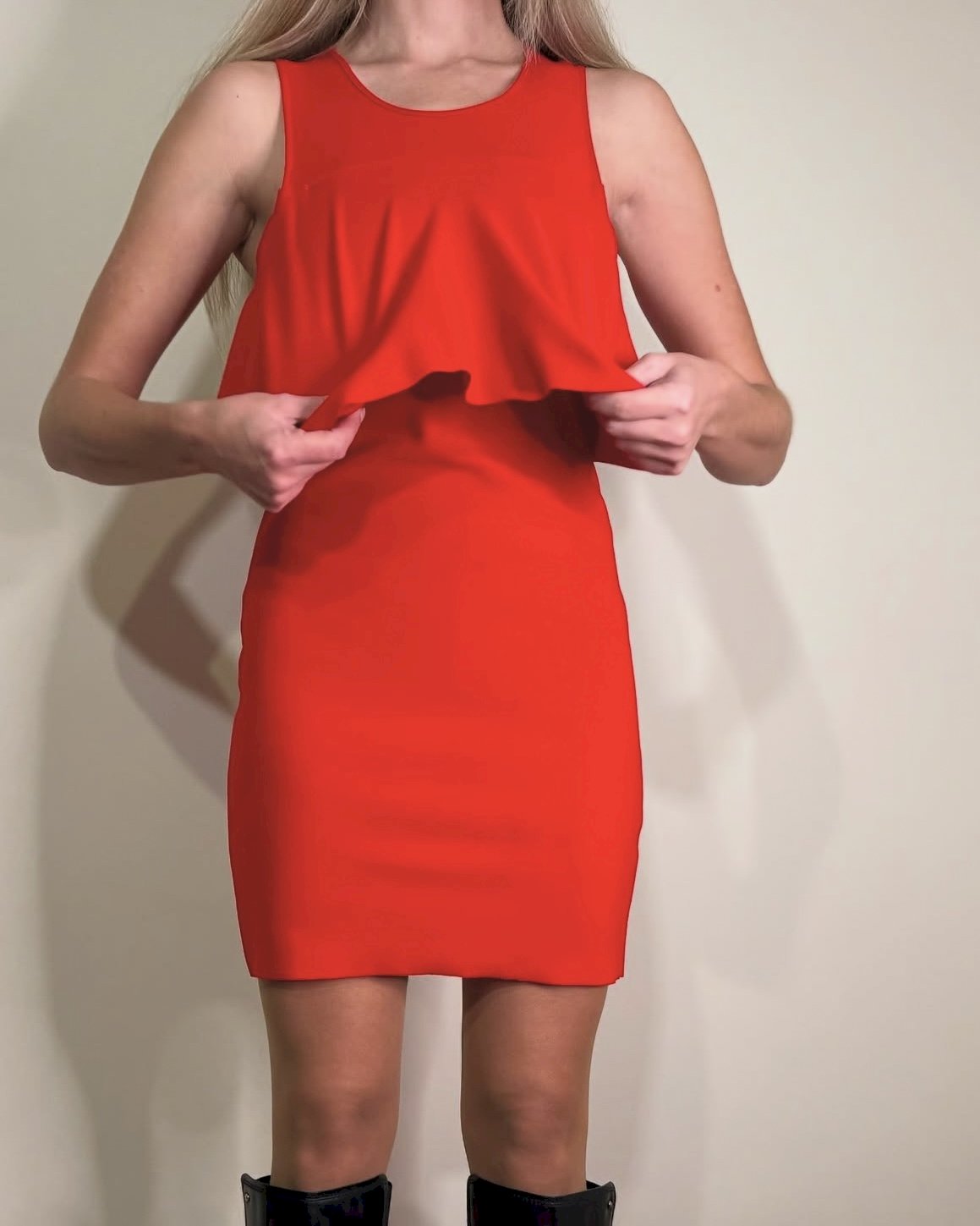 Crvena peplum haljina koja savršeno ističe figuru. Stanje besprijekorno.