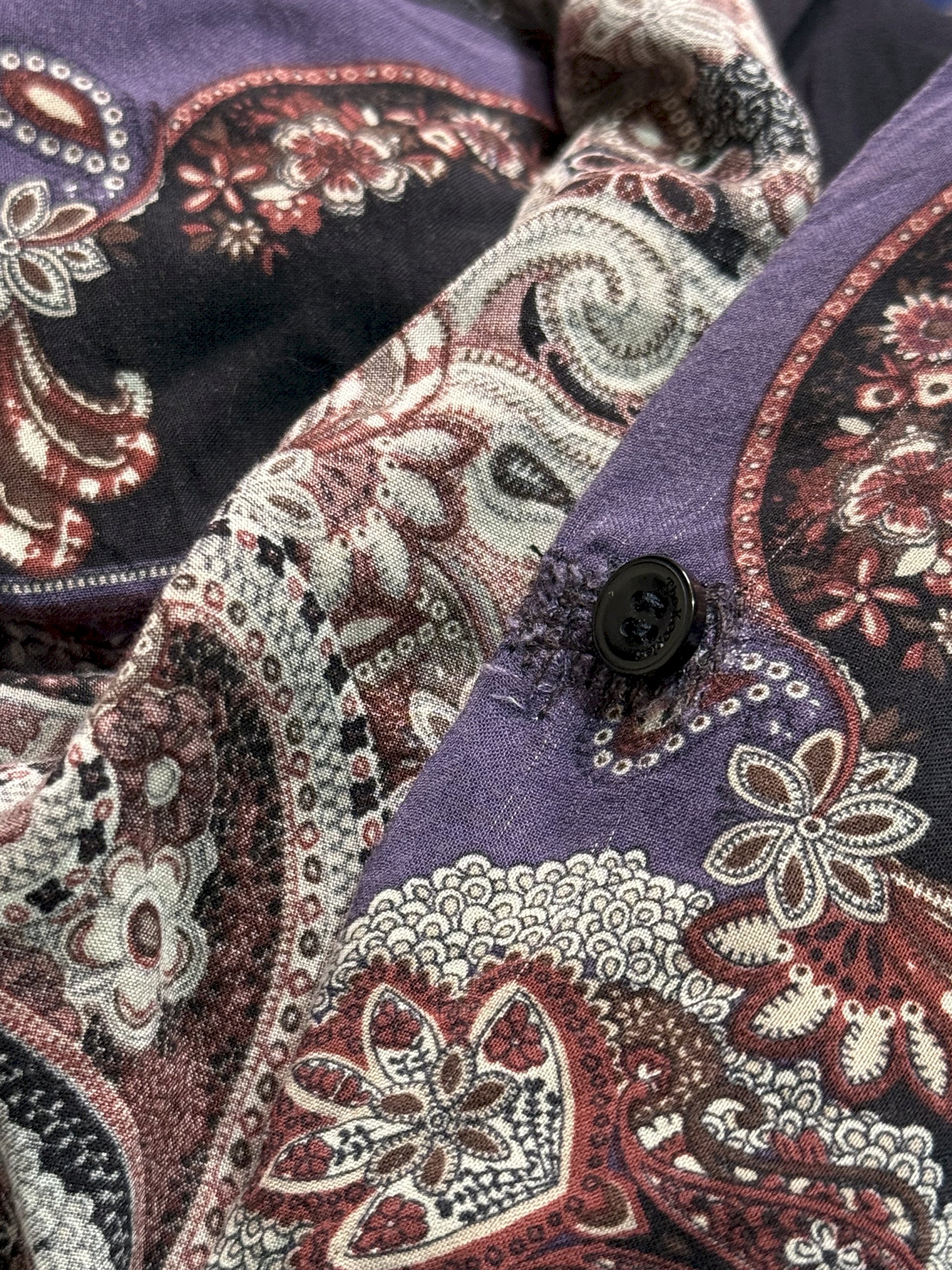 Košulja je u dobrom stanju - jedini nedostatak je popravljena rupica za gumb (prikazano na slikama), koja nije vidljiva prilikom nošenja.