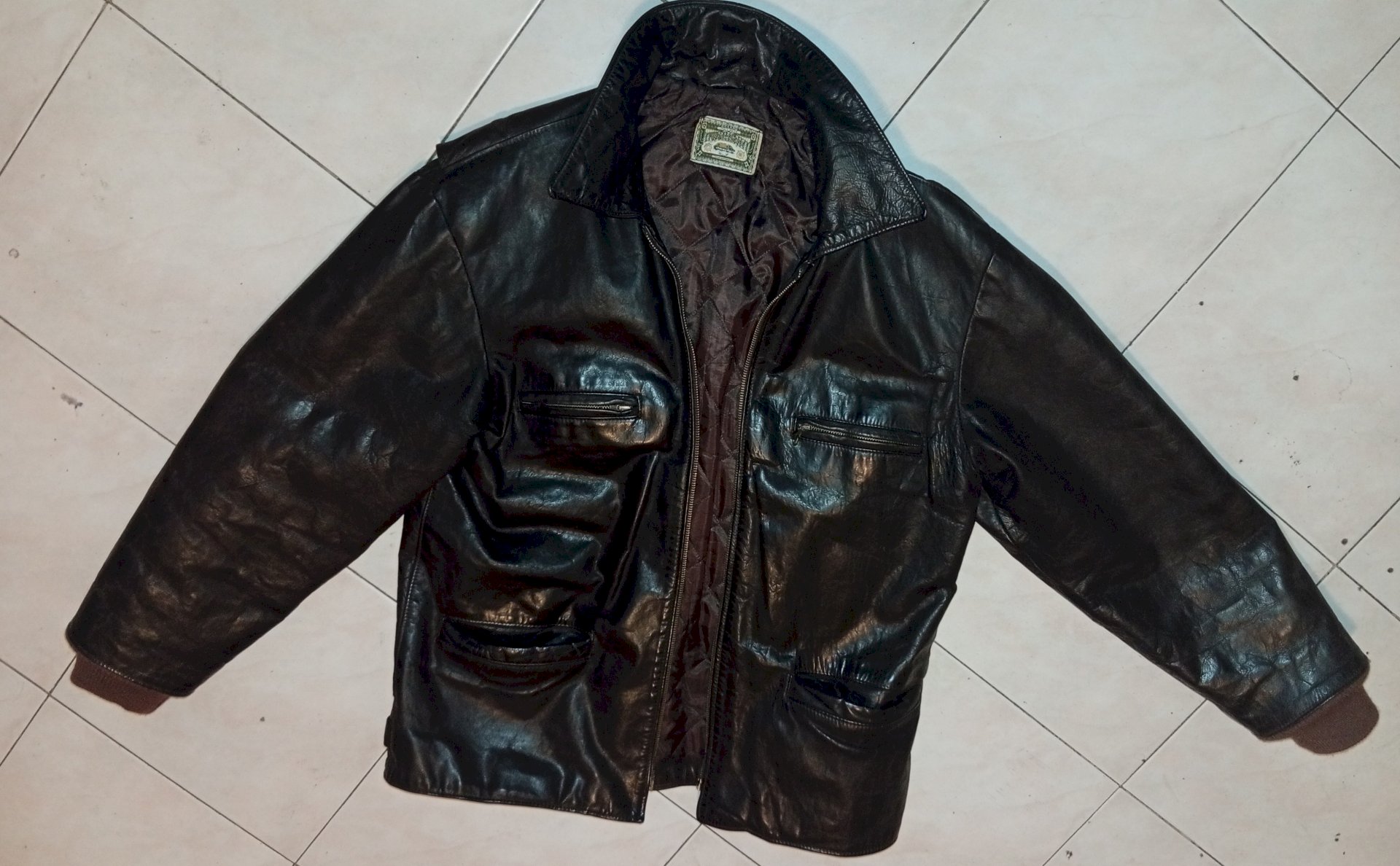 Vintage kožna jakna, velićina M, jakna stara oko 35 godina. Jakna koža nije oštećena, vide se tragovi godina. Pokidan je patent, rajflušl, treba ga zamijeniti.