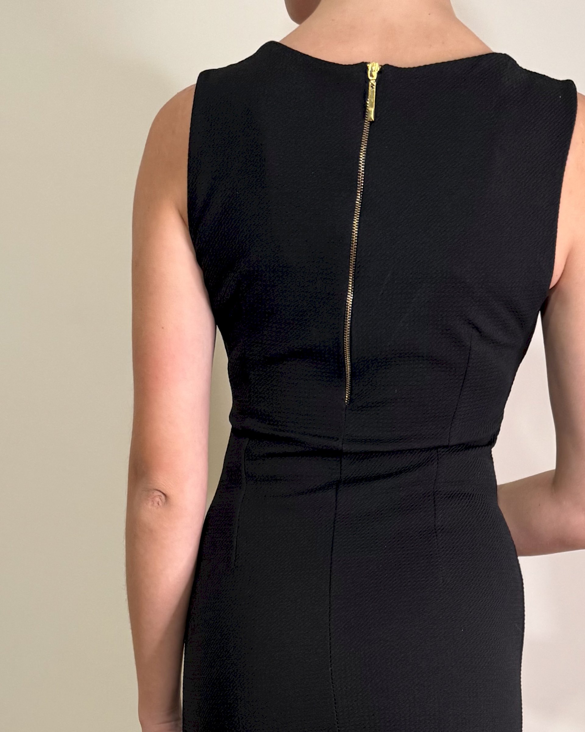 Uska crna haljina bez rukava s ušivenim perlicama. Odlično stanje.