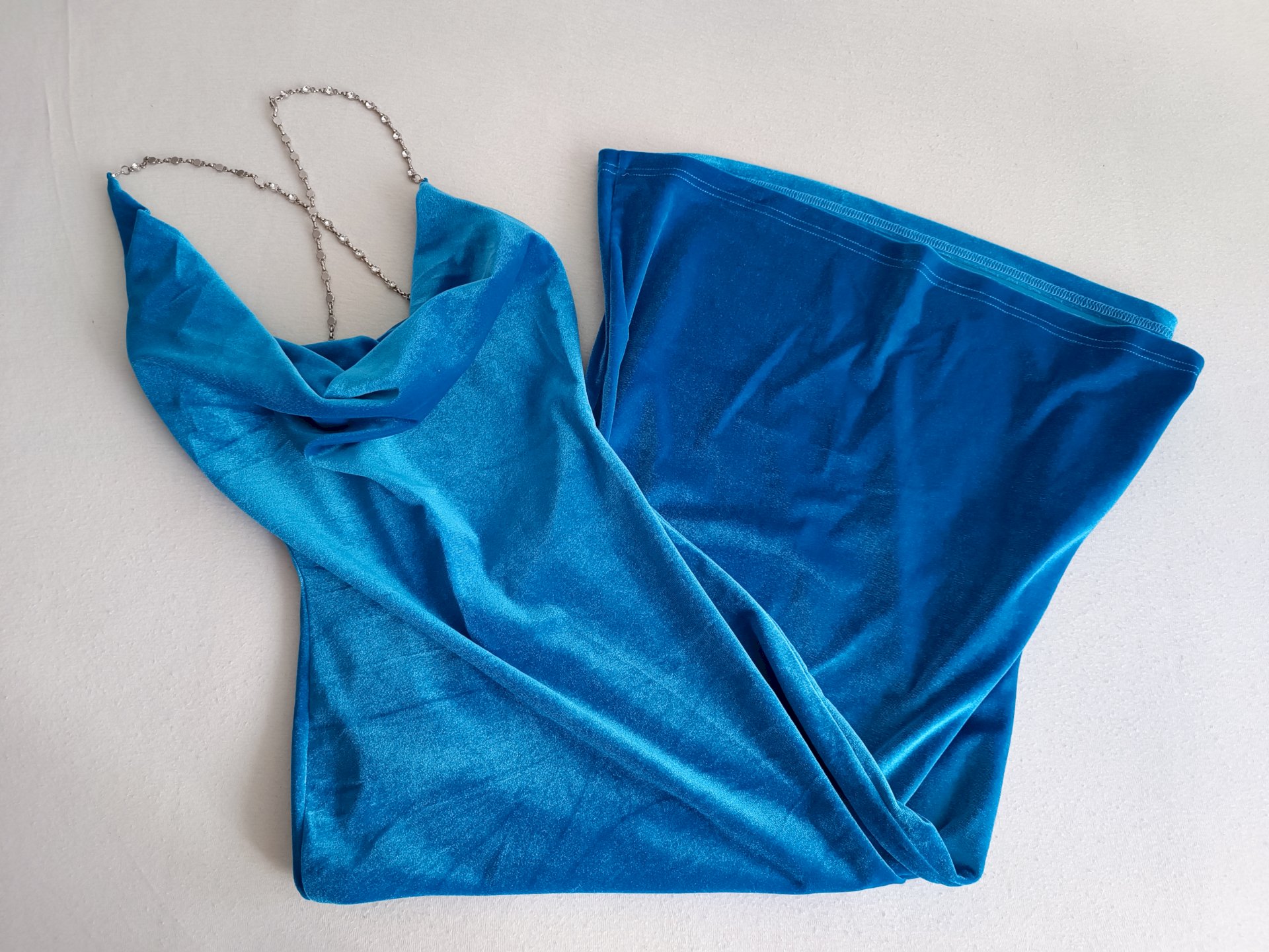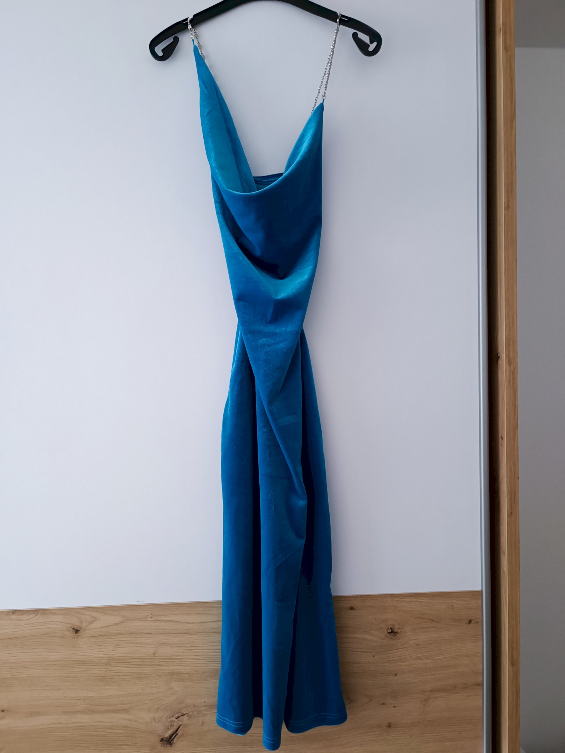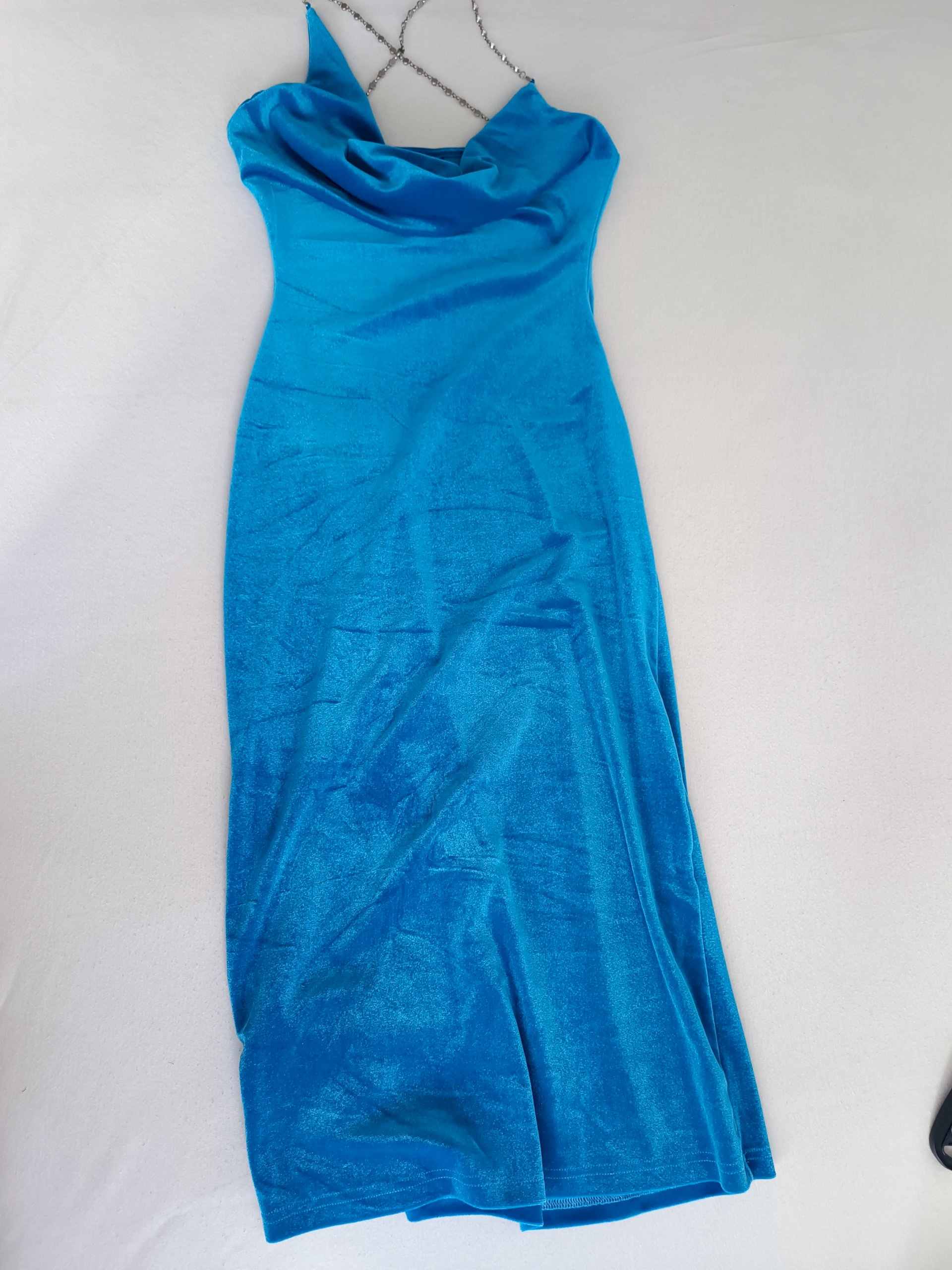 Plava midi plišena haljina, lađa otvor, XS veličina. Nije nošena.