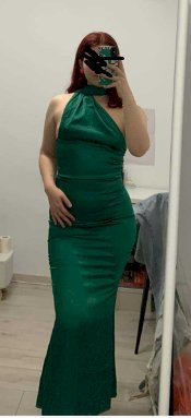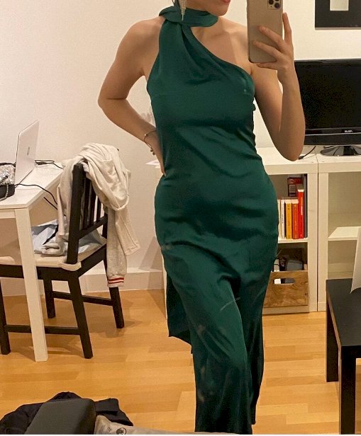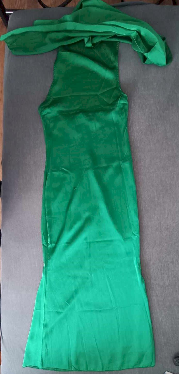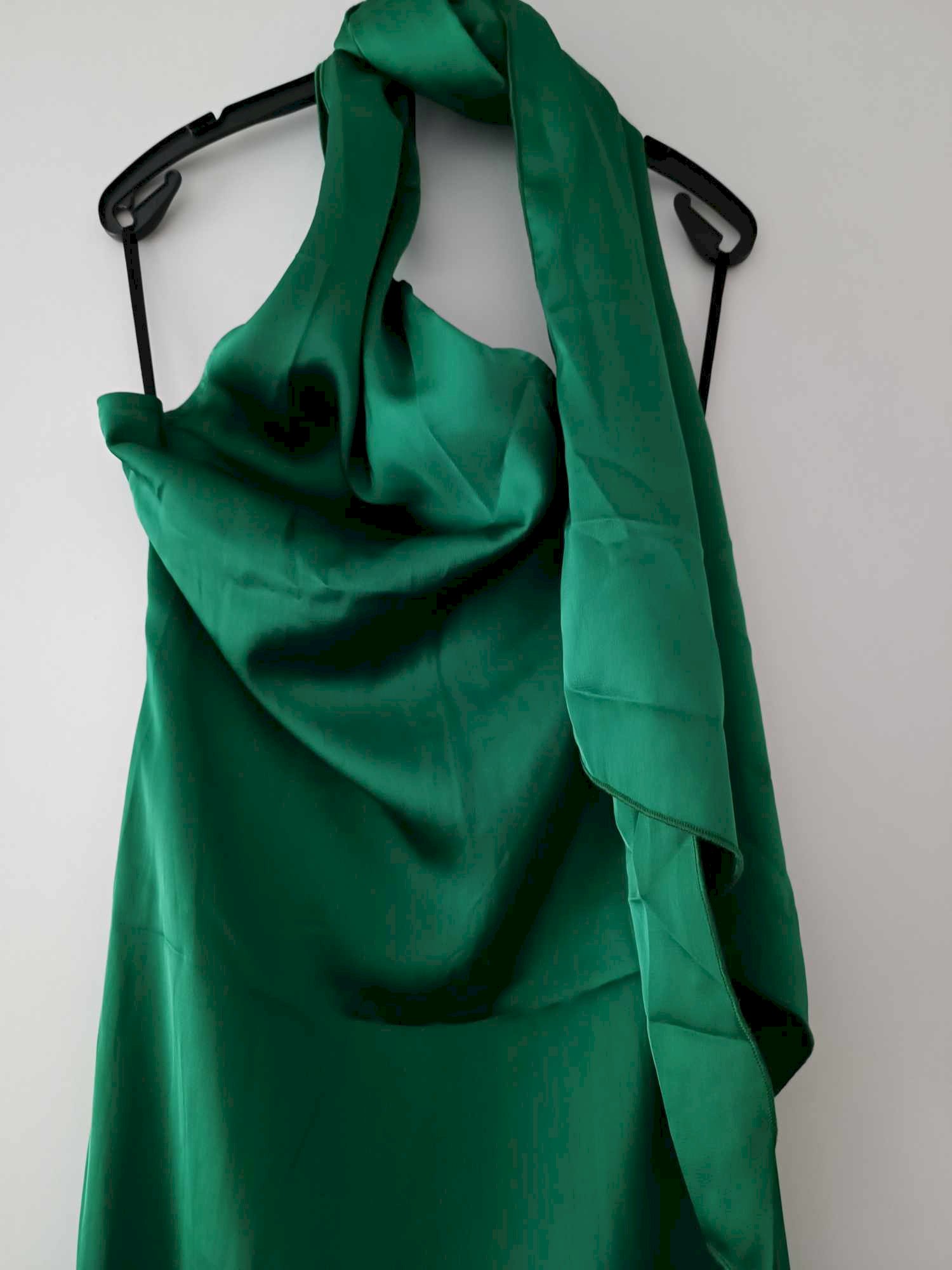 Haljina od satena s detaljem oko vrata koji se nosi kao šal. Otvorena leđa. XS veličina