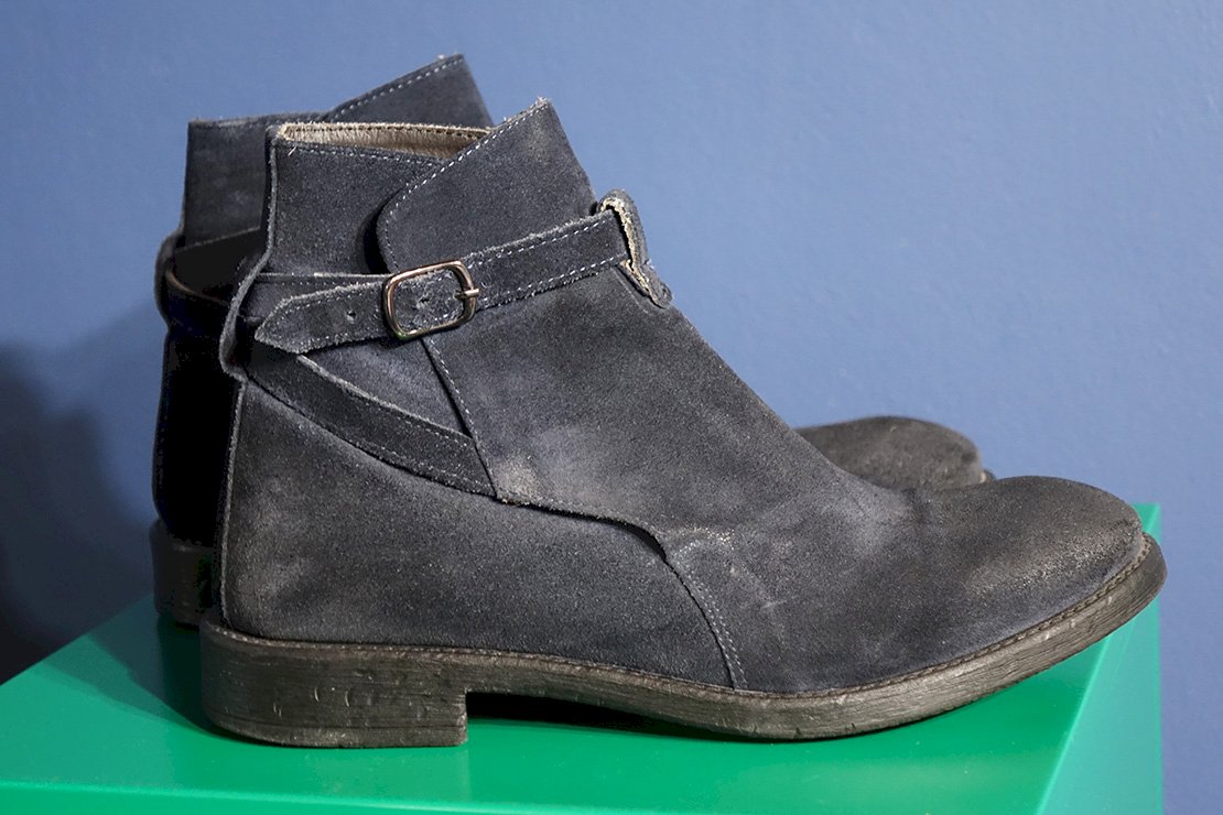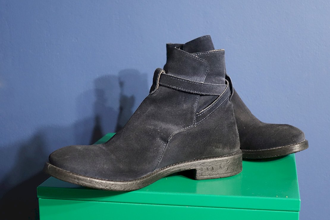 Tamno plave kožne čizme (gamoš) zanimljivog dizajna (chelsea boots). Nikad nošene. Veličina 42.
