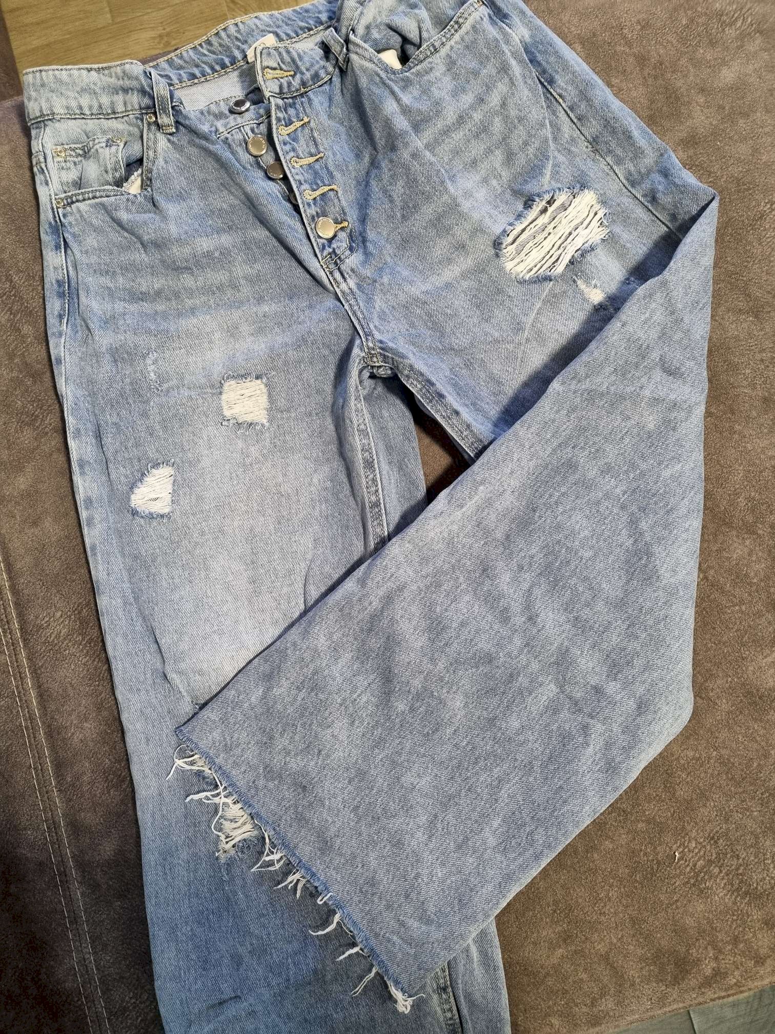 traperice 42 deklarirane kao boyfriend zvonolikih nogavica, obucene jednom, ne odgovara mi kroj, bez elastina.