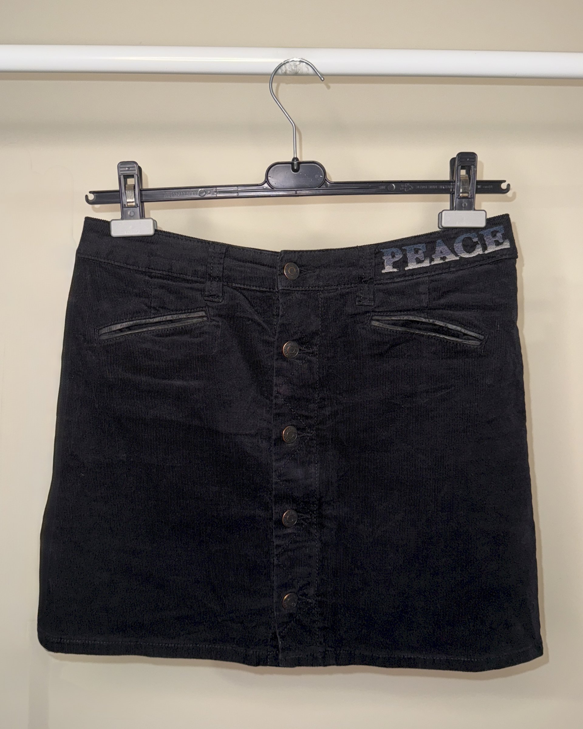 Zadig & Voltaire crna mini suknja od samta s ušivenim detaljima i džepovima od prave kože
