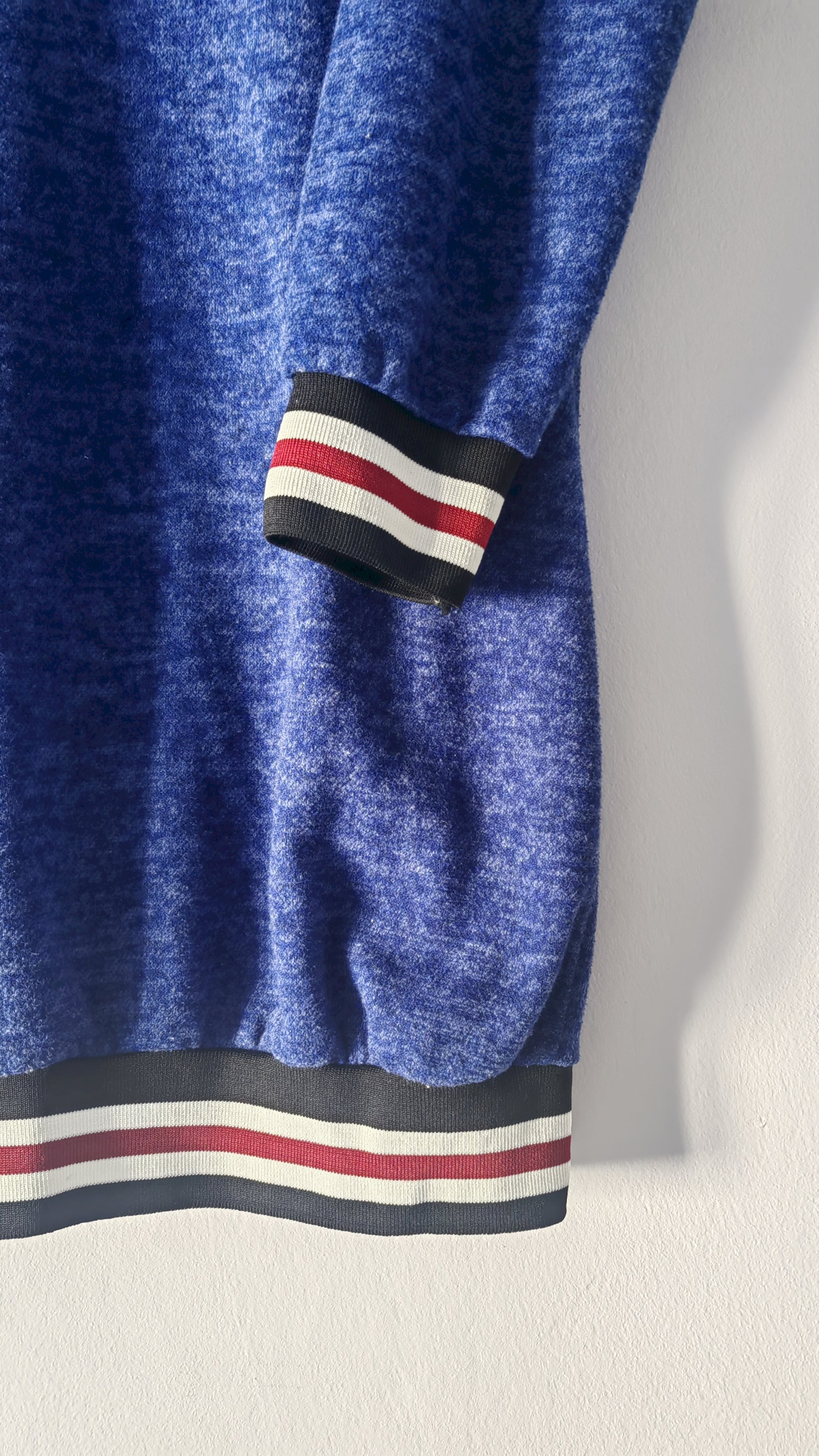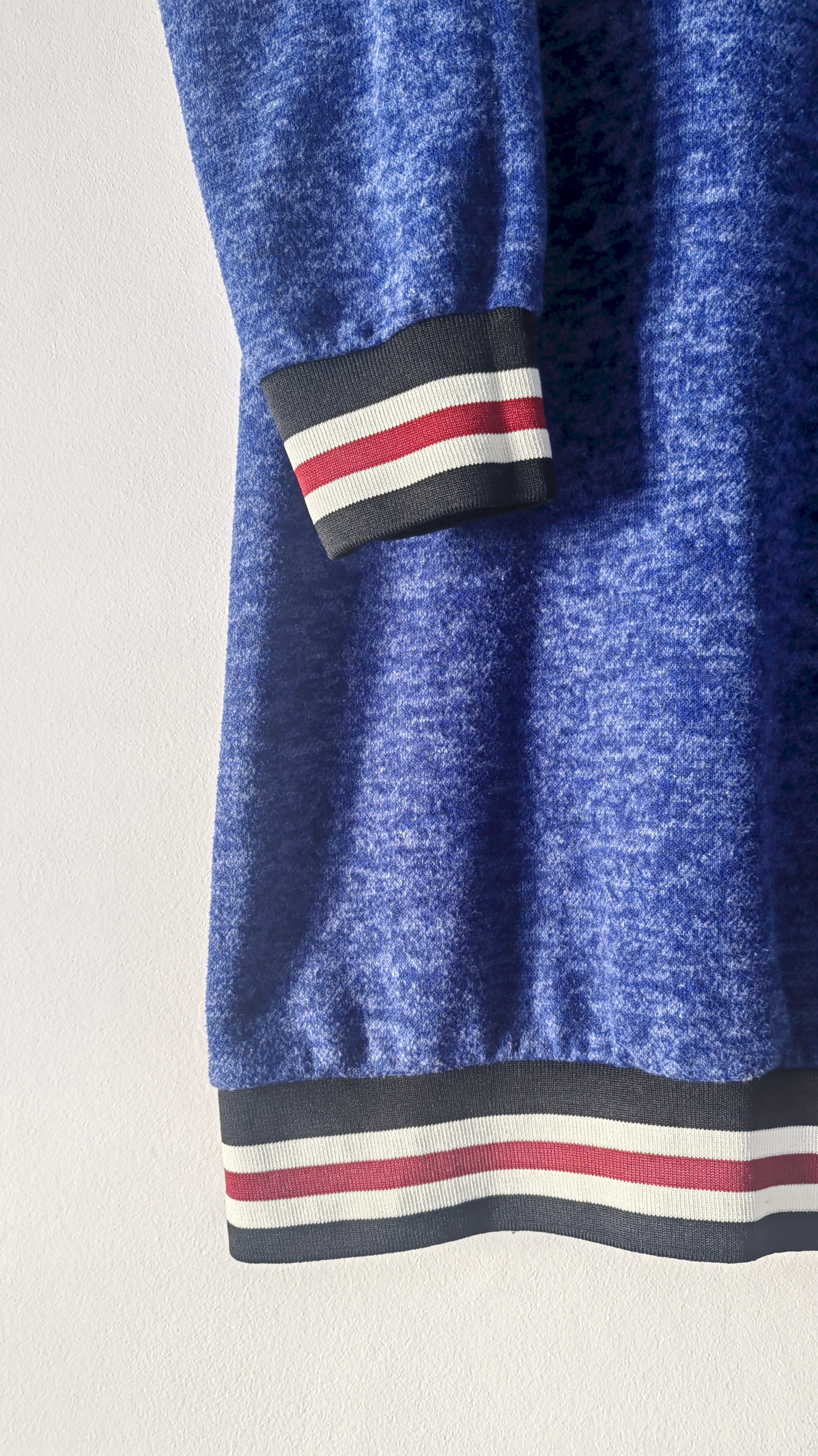 Ovratnik i donji dio rukava ima rastezljiv material na pruge crno-bijelo-crveno boje